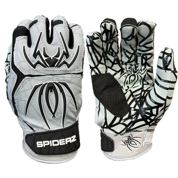 These 2023 Spiderz HYBRID Batting Gloves: Silver/Black models are available from Youth Medium to Adult 2XL and ships fast and free right here at headbangersports.com!