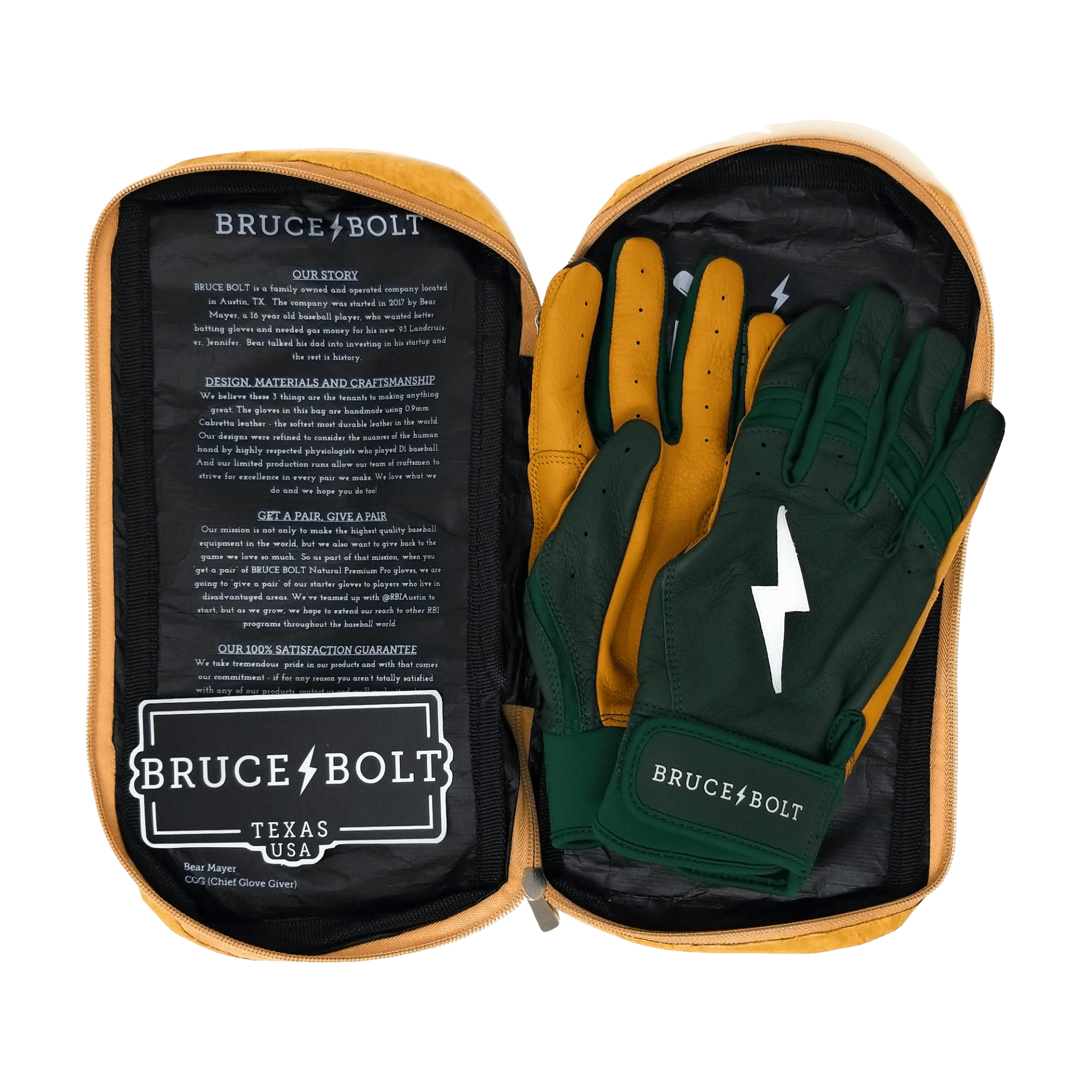 - Designed to fit – Bruce Bolt studied the human hand to understand where we could refine the design of our gloves to fit better than any other in baseball. Our fingers pinch to follow the conical shape of the human finger and our palm is curved to follow the medial articulation (the curve) of the wrist. Their design not only makes their gloves more comfortable but it also makes BRUCE BOLT gloves more durable because there isn’t any unnecessary stitching near the major wear points on the glove.