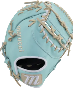 M Type fit system provides integrated thumb and pinky sleeves with enhanced thumb stall cushioning to maximize comfort and feel. The Marucci Palmetto Fastpitch First Base Mitt offers a deep pocket and tapered hand stall which provides a better fit and fielding control. The Fastpitch Palmetto First Base Mitt is built for the female catcher looking for a beautiful mint blue colorway.